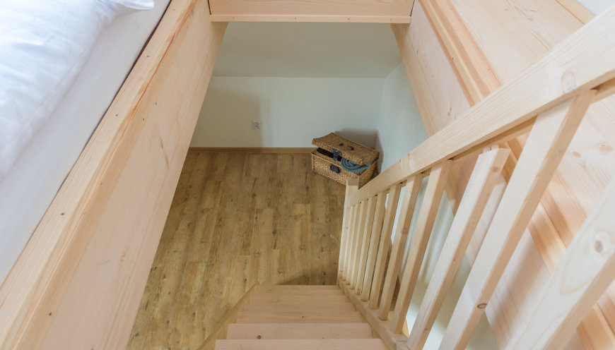 Jak už název slibuje, základním prvkem pokoje je voňavé dřevo. A co víc – díky nevšednímu spaní v patře si užijete doslova noc pod hvězdným nebem.