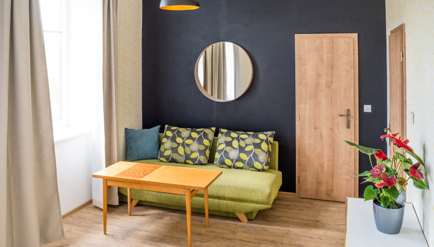 Prosluněný pokoj, který vás vtáhne svým retro vybavením zpátky do minulosti, ale zároveň vám poskytne veškerý komfort a tak trochu nevšední zážitek.